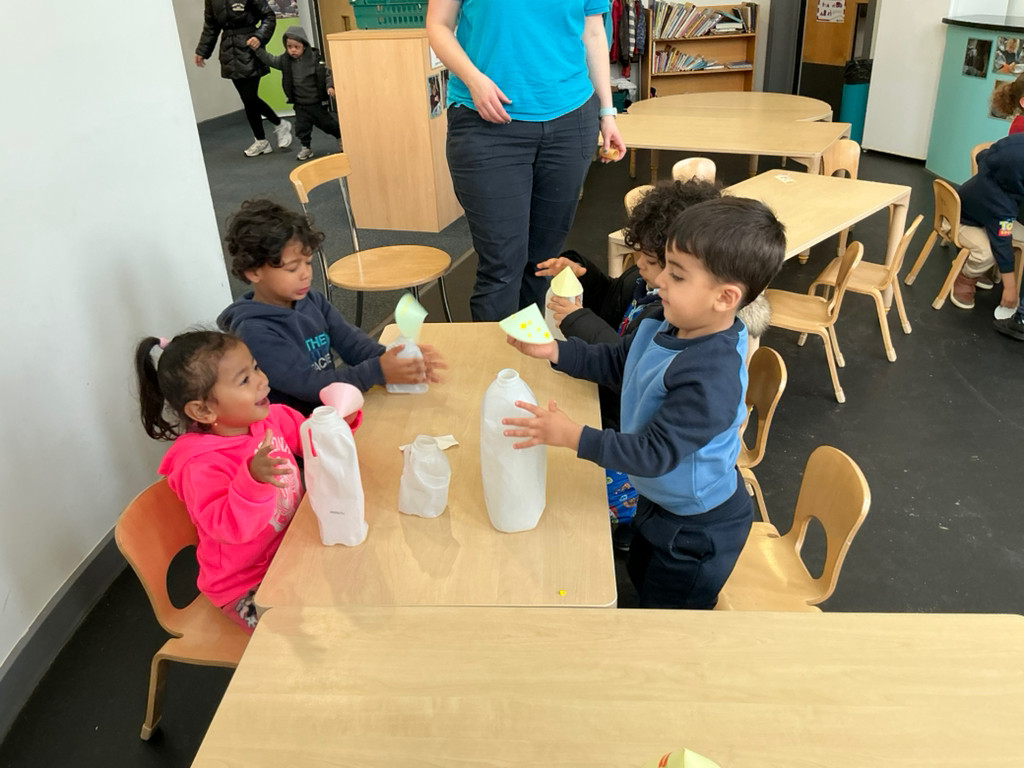We have also had 2 special visits this term: one from science Oxford where the 3-4 year olds were learning about the power of wind by making mouse rockets, and to watch the Pantomime performance of Cinderella, which the children loved joining in with the interactive parts.