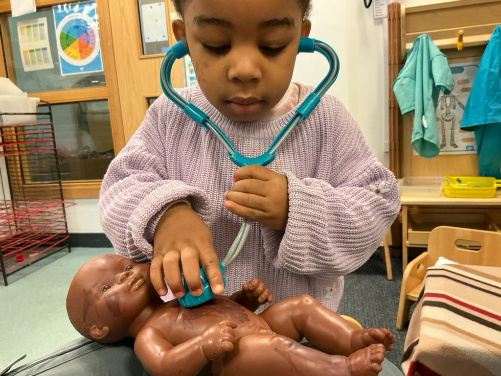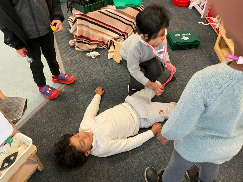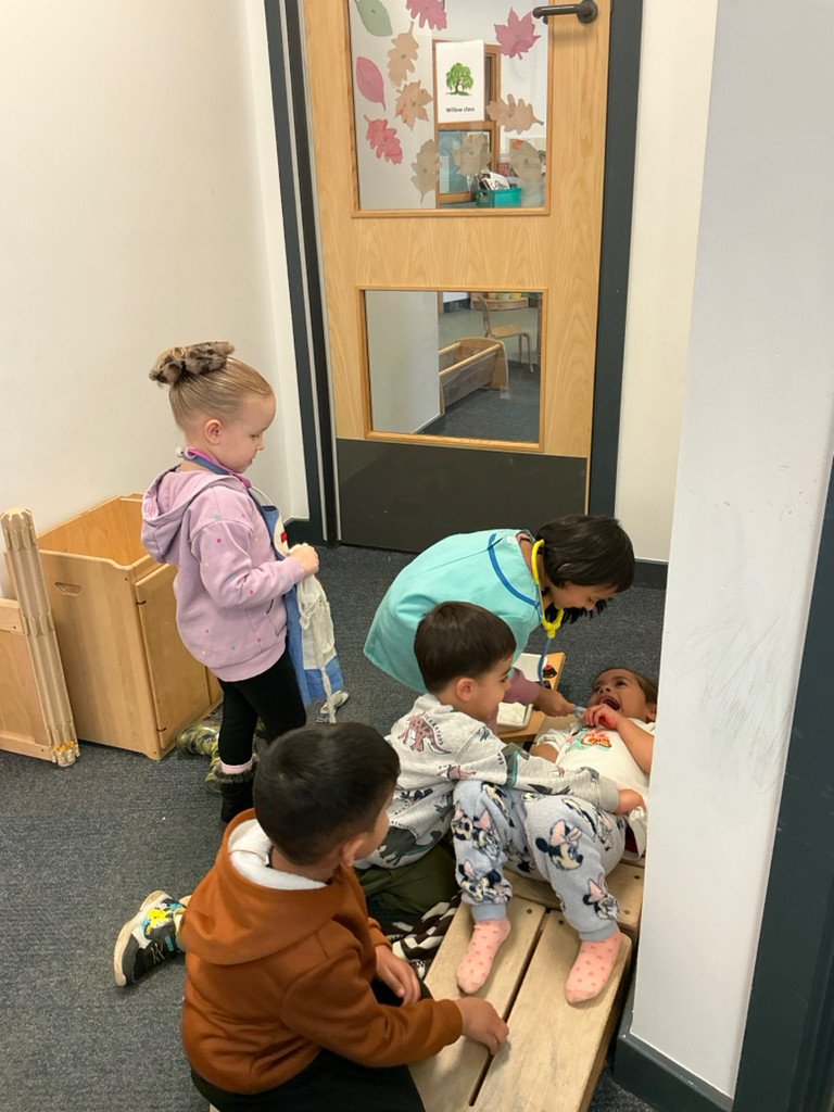Our role play area has been focused on our children's interest in Doctors, so the children have had a go at helping to look after their friends and babies, using a variety of tools; as well as using builders tools to help Santa build things as they helped to decorate the Christmas tree.