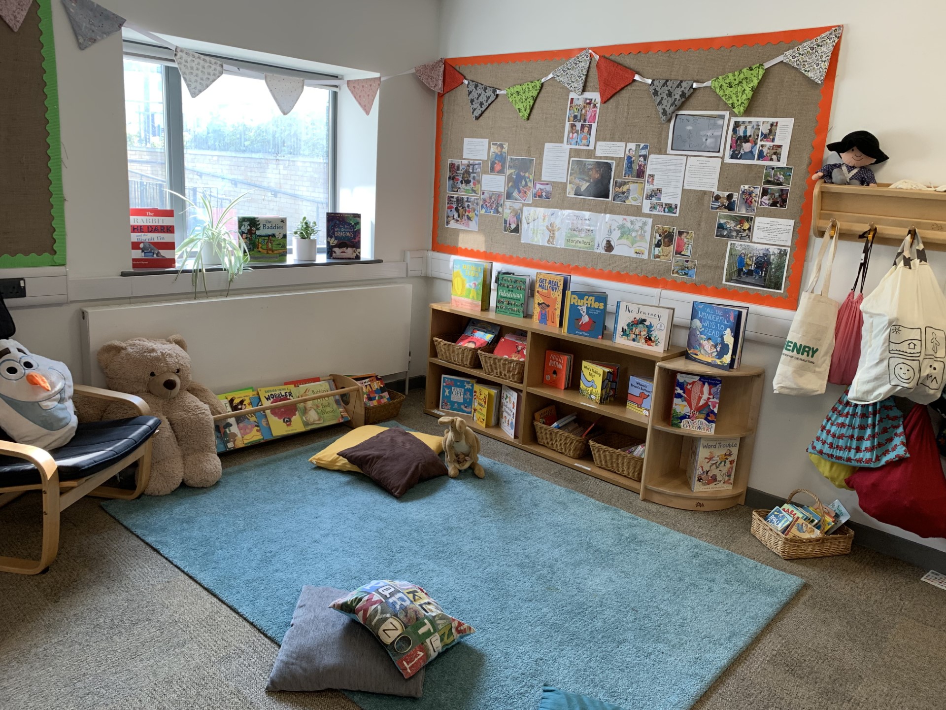 We have a beautiful space for children in the School, Day Nursery and local community to share books and stories. Creating a love of books begins at birth, sharing a nurturing time passing on loved stories, songs and rhymes creates the foundations of early reading.
